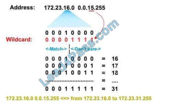 172.23.16.0 to 172.23.31.255. Now let\\’s consider the wildcard mask of 0.0.0.254 (four-octet: 254 = 1111 1110) which